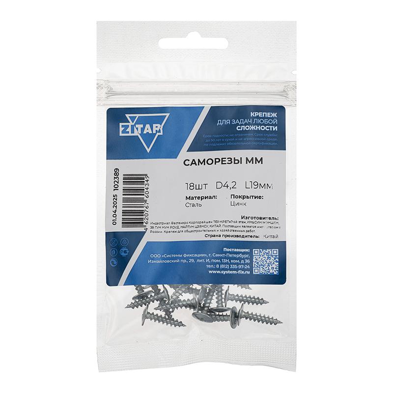 Саморез для тонкого метал. листа 4.2х19 (уп.18шт) пакет Tech-Krep 102389