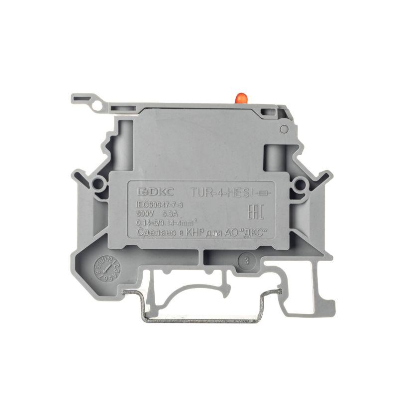 Клемма для предохранителя винтовой зажим 2 точки подключения индикация 250В 4кв.мм сер. DKC TUR-4-HESILED250