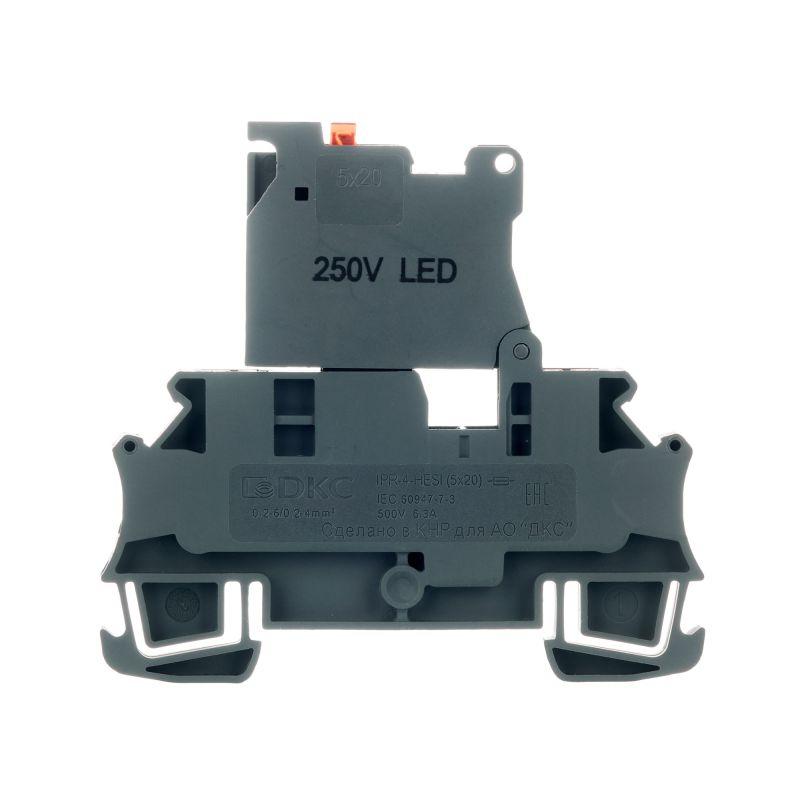 Клемма для предохранителя зажим Push-in 2 точки подключения индикация 250В 4кв.мм сер. DKC IPR-4-HESILED250