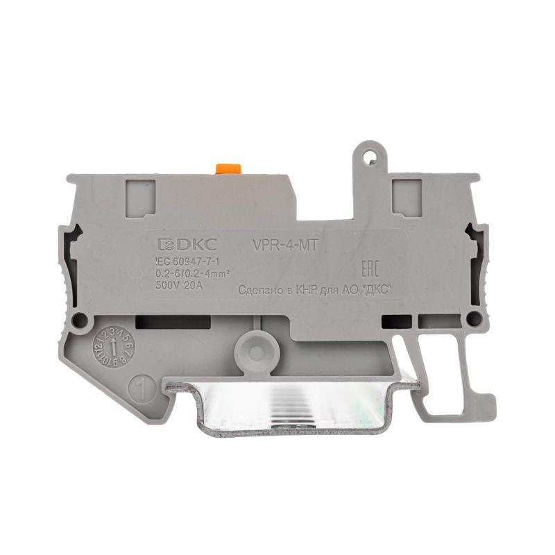 Клемма с размыкателем зажим push-in 2 точки подключения 4кв.мм сер. DKC VPR-4-MT