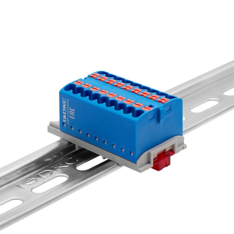 Блок распределительный зажим push-in 18 точек подключения 25кв.мм син. DKC DTP1-018-04SPUB