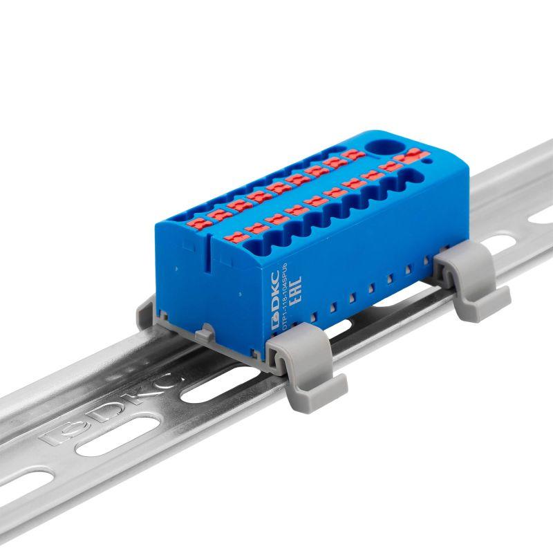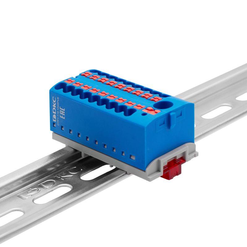Блок распределительный зажим push-in 1 ввод 6кв.мм 18 точек подключения 25кв.мм син. DKC DTP1-118-104SPUB
