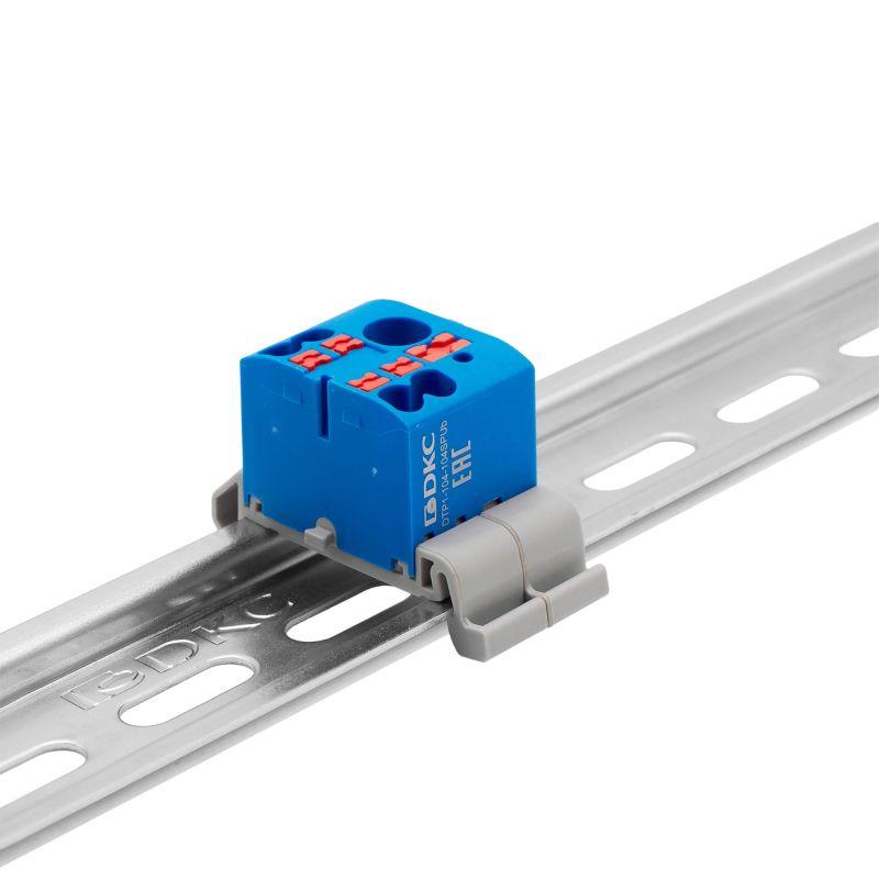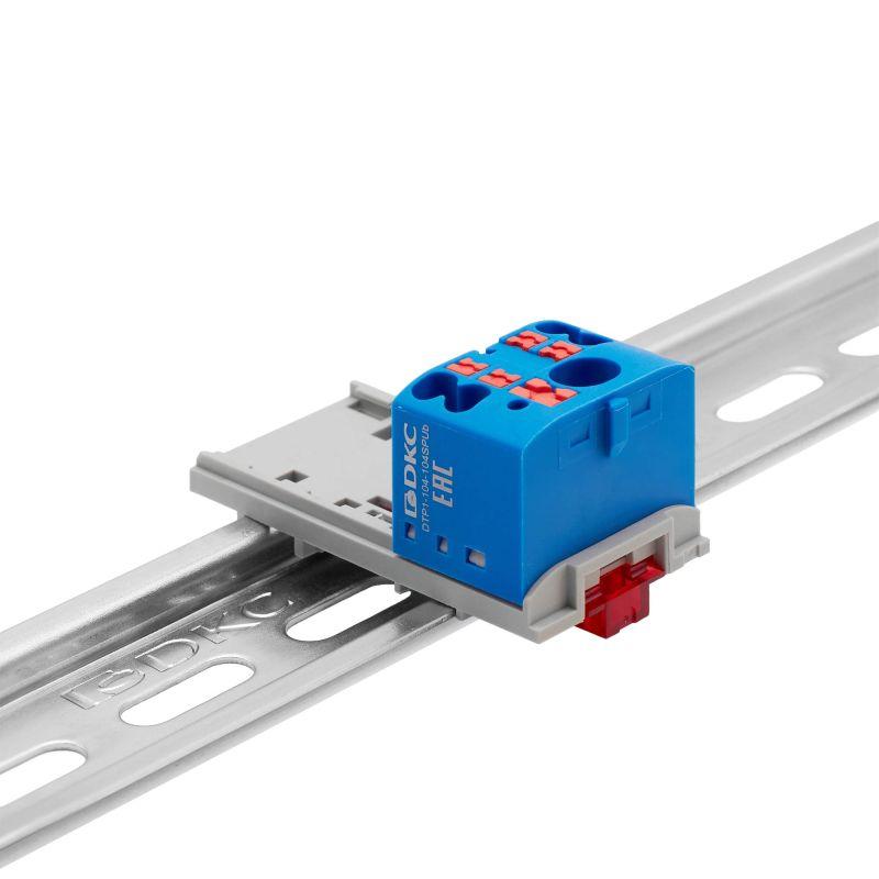 Блок распределительный зажим push-in 1 ввод 6кв.мм 4 точки подключения 25кв.мм син. DKC DTP1-104-104SPUB