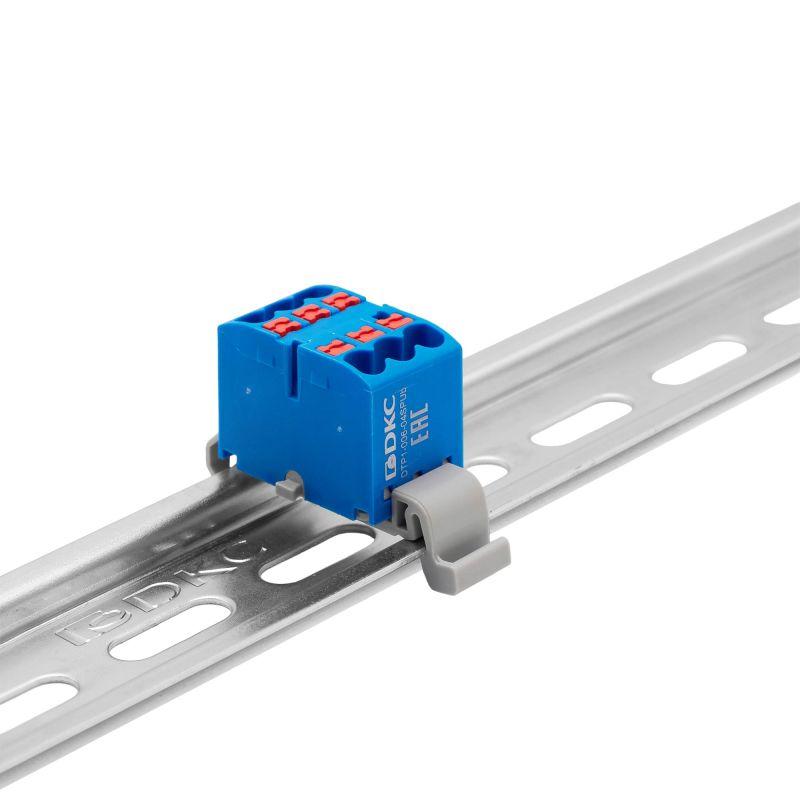 Блок распределительный зажим push-in 6 точек подключения 25кв.мм син. DKC DTP1-006-04SPUB