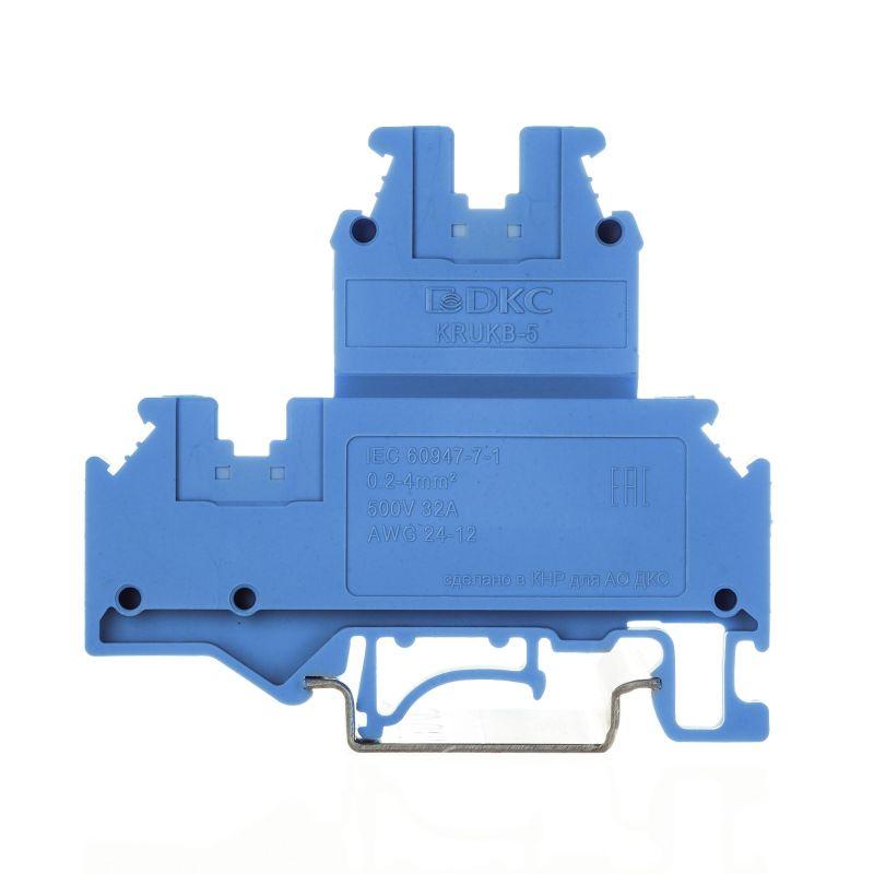 Клемма двухуровневая винтовой зажим 4 точки подключения 4кв.мм син. DKC KRUKB-5-BU