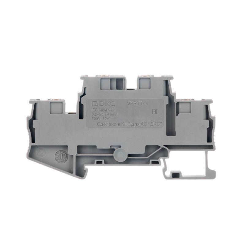 Клемма двухуровневая зажим push-in 4 точки подключения 4кв.мм сер. DKC VPRTT-4-GY