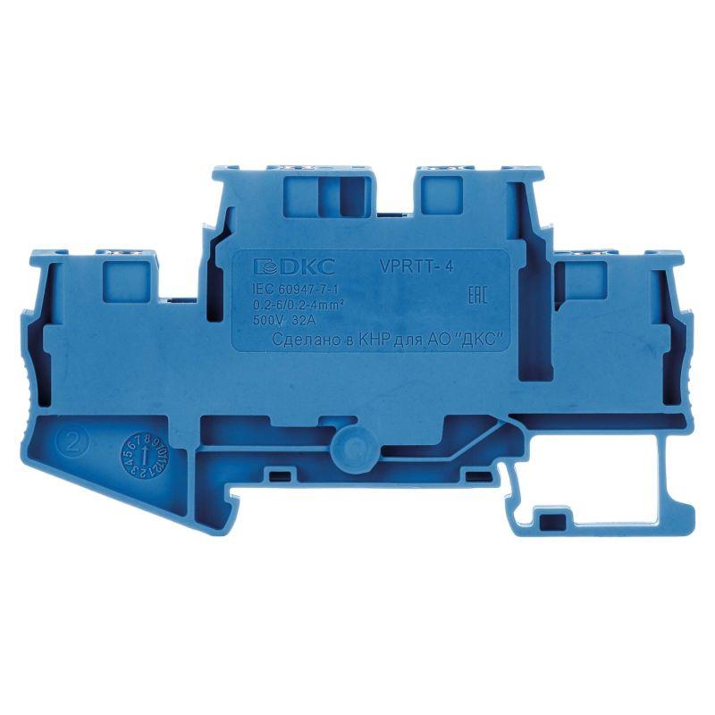 Клемма двухуровневая зажим push-in 4 точки подключения с перемычкой между уровнями 4кв.мм син. DKC VPRTT-4-PV-BU