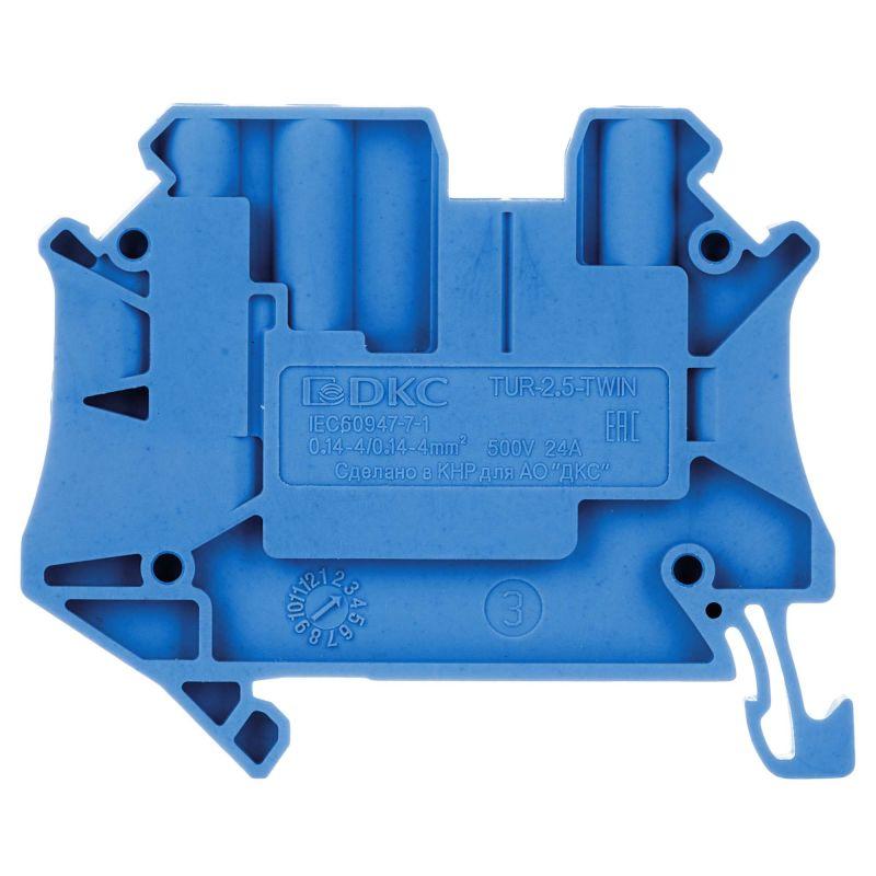 Клемма проходная винтовой зажим 3 точки подключения 2.5кв.мм син. DKC TUR-2.5-TWIN-BU