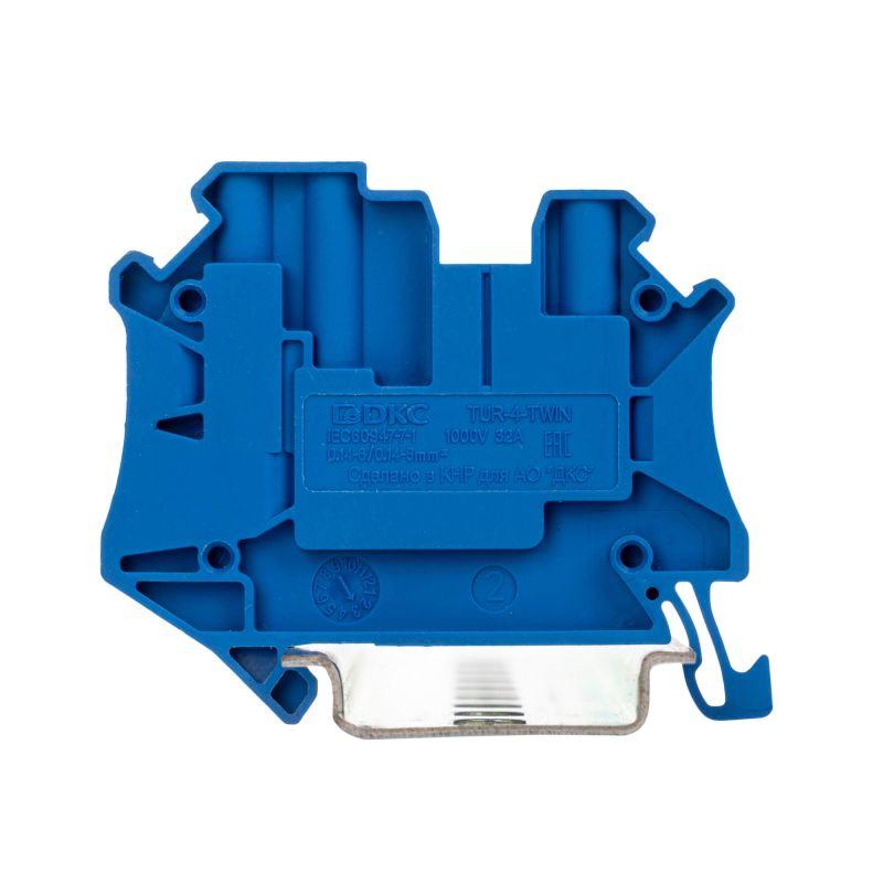 Клемма проходная винтовой зажим 3 точки подключения 4кв.мм син. DKC TUR-4-TWIN-BU
