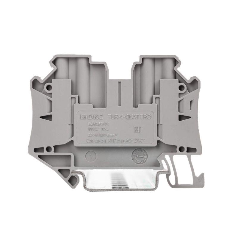 Клемма проходная винтовой зажим 4 точки подключен. 4 кв.мм сер. (уп.60шт) DKC TUR-4-QUATTRO