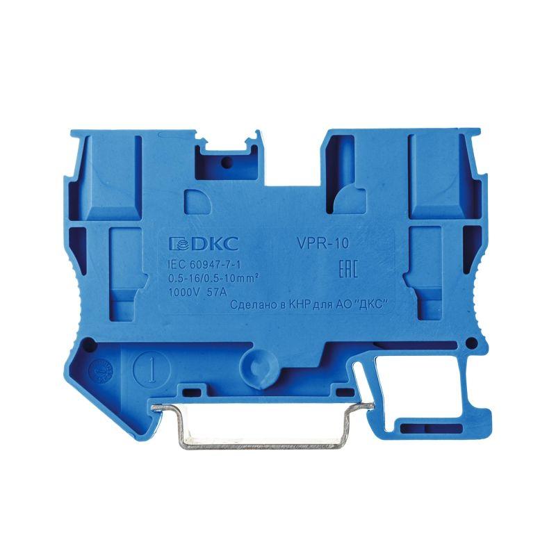 Клемма проходная зажим push-in 2 точки подключения 10кв.мм син. DKC VPR-10-BU