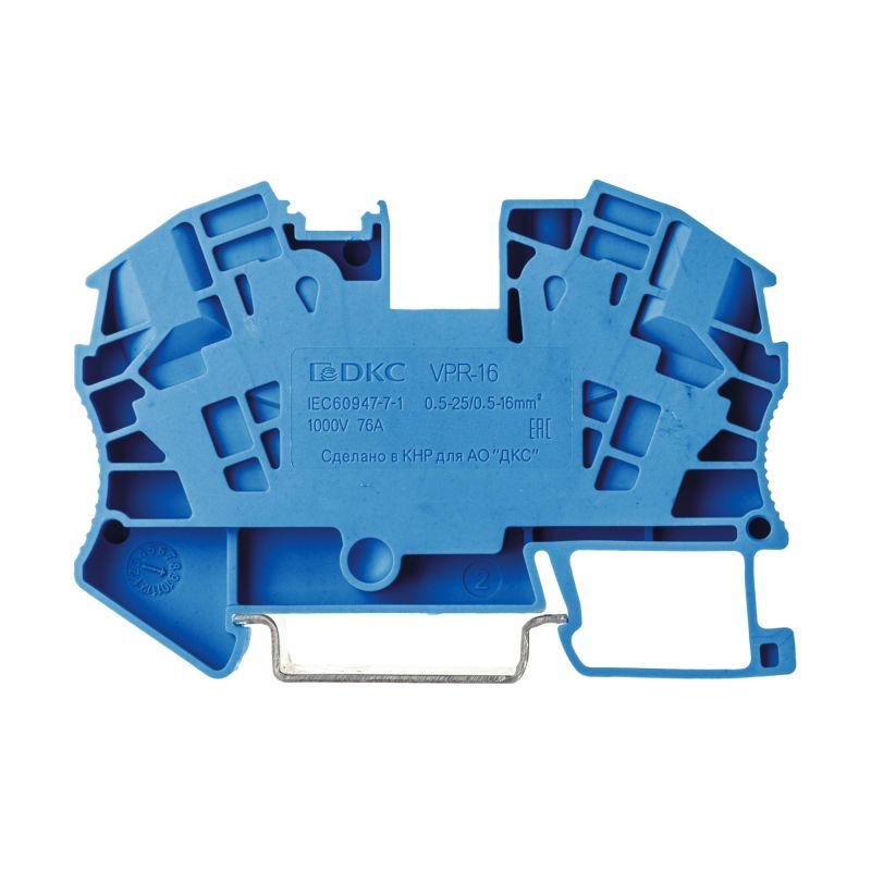 Клемма проходная зажим push-in 2 точки подключения 16кв.мм син. DKC VPR-16-BU