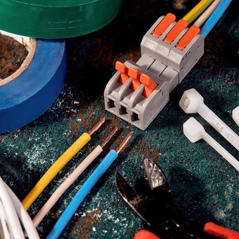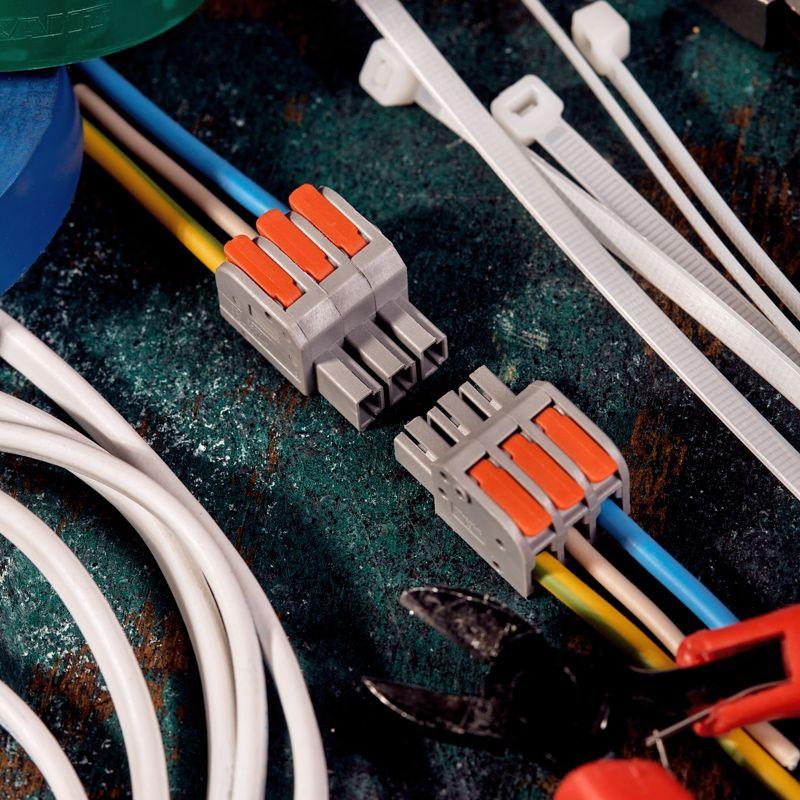 Клемма СМК 222-423R проходная разъемная 3 полюса сер. 0.2-2.5/4кв.мм Rexant 07-5263