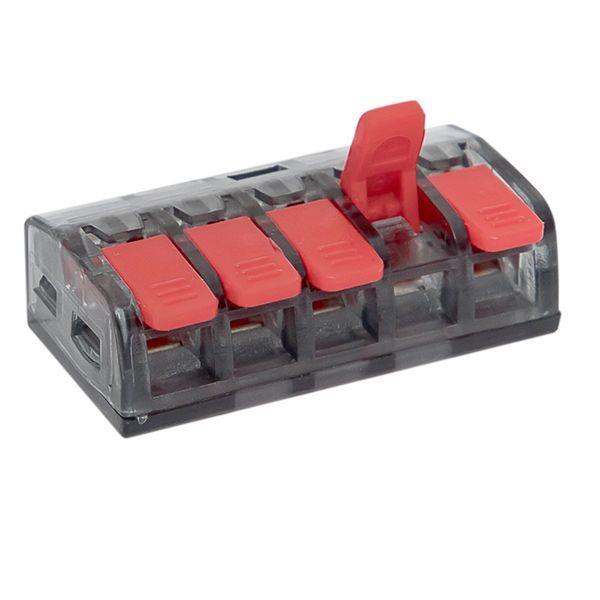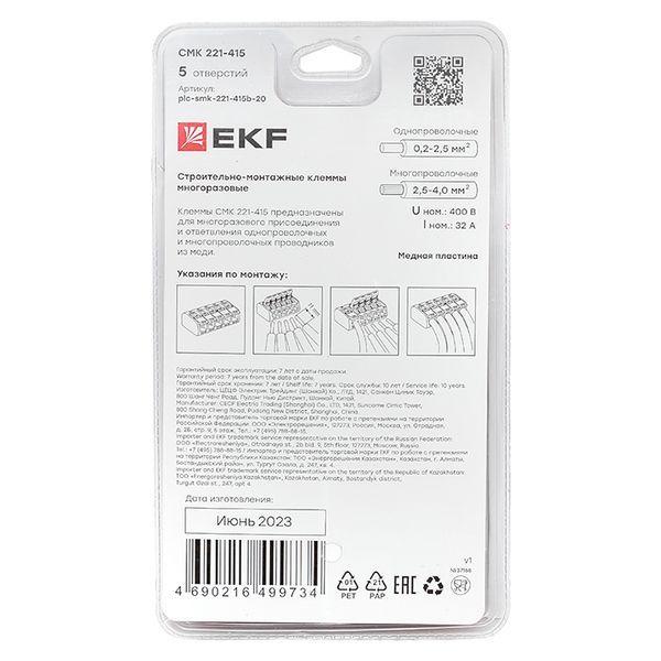 Клемма строительно-монтажная СМК 221-415 с рычагом 5 отверстий 0.2-4.0кв.мм (блист.20шт) PROxima EKF plc-smk-221-415b-20