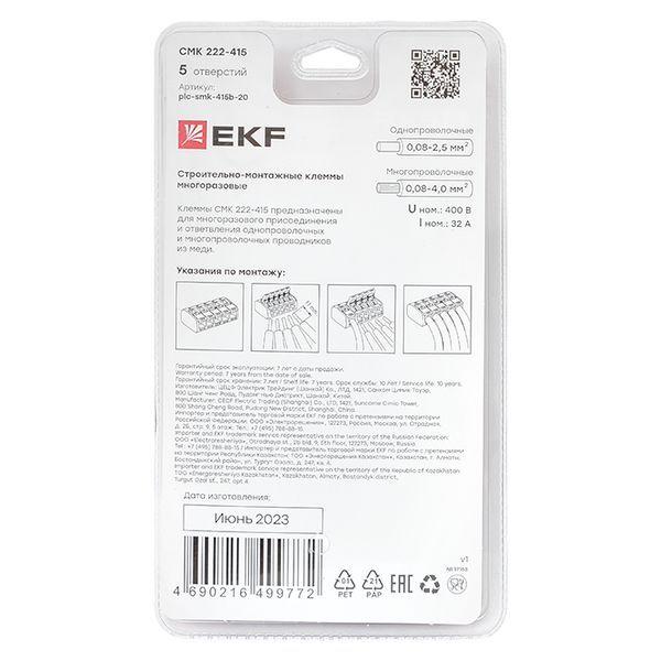 Клемма строительно-монтажная СМК 222-415 с рычагом 5 отверстий (блист.20шт) PROxima EKF plc-smk-415b-20