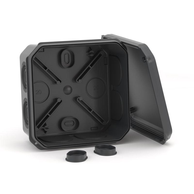 Коробка ответвительная с 8+2 кабельными вводами d20/20мм IP55 85х85х40мм черн. DKC 53785B