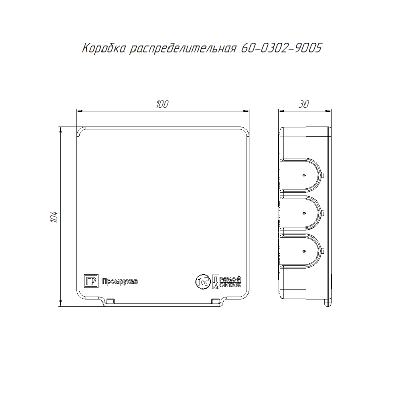 Коробка распределительная 100х100х30 (HF) двухкомп. Безгалоген. для прям. монтажа черн. (уп.48шт) Промрукав 60-0302-9005