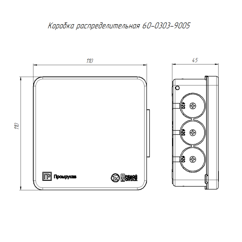 Коробка распределительная ОП 100х100х40 для прямого монтажа двухкомпонентная безгалогенная (HF) 12 вводов IP66 черн. Промрукав 60-0303-9005