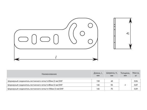 Соединитель для лестн. лотка шарнирный H=100мм 2мм EKF shlt1002