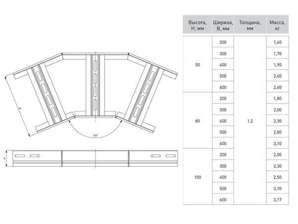Угол для лотка горизонтальный 45град. 100х500мм EKF glt45100500