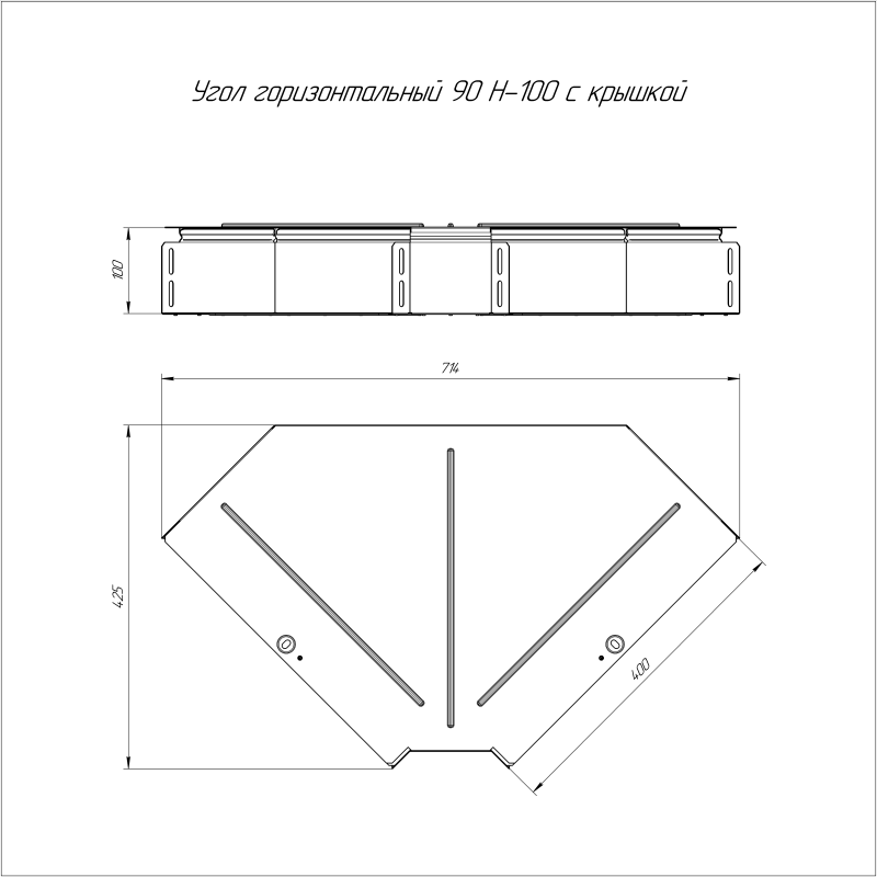 Угол для лотка горизонтальный 90град. 400х100 с крышкой Стандарт Промрукав PR16.0624
