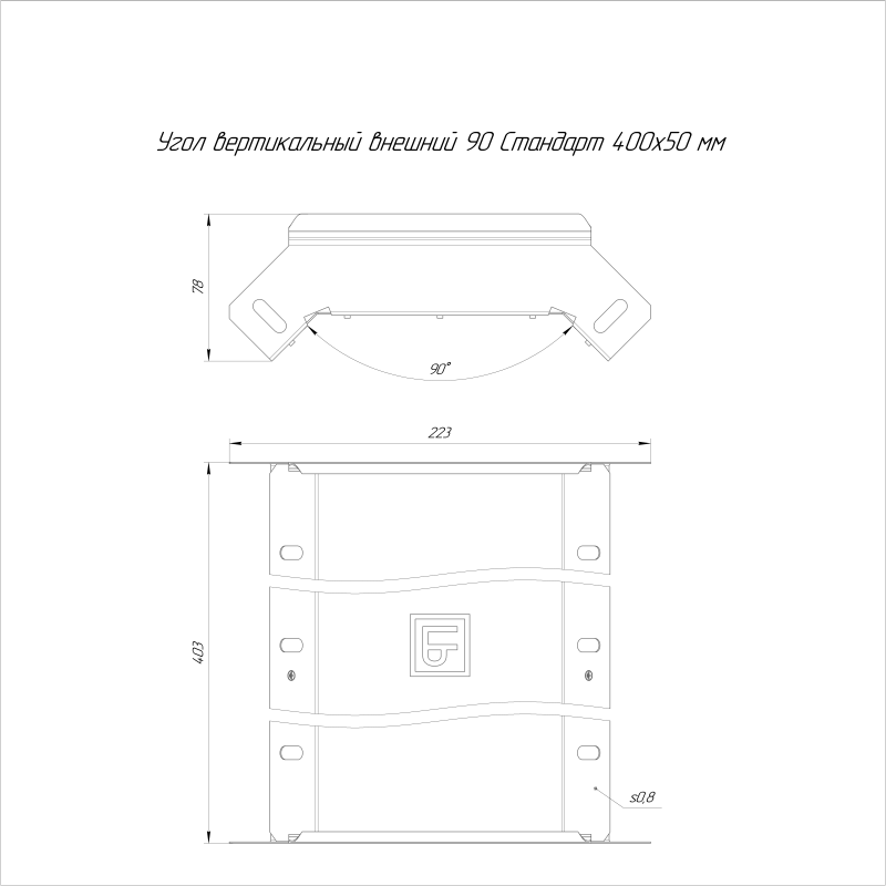 Угол для лотка вертикальный внешний 90град. 400х50 Стандарт HDZ Промрукав PR16.1606