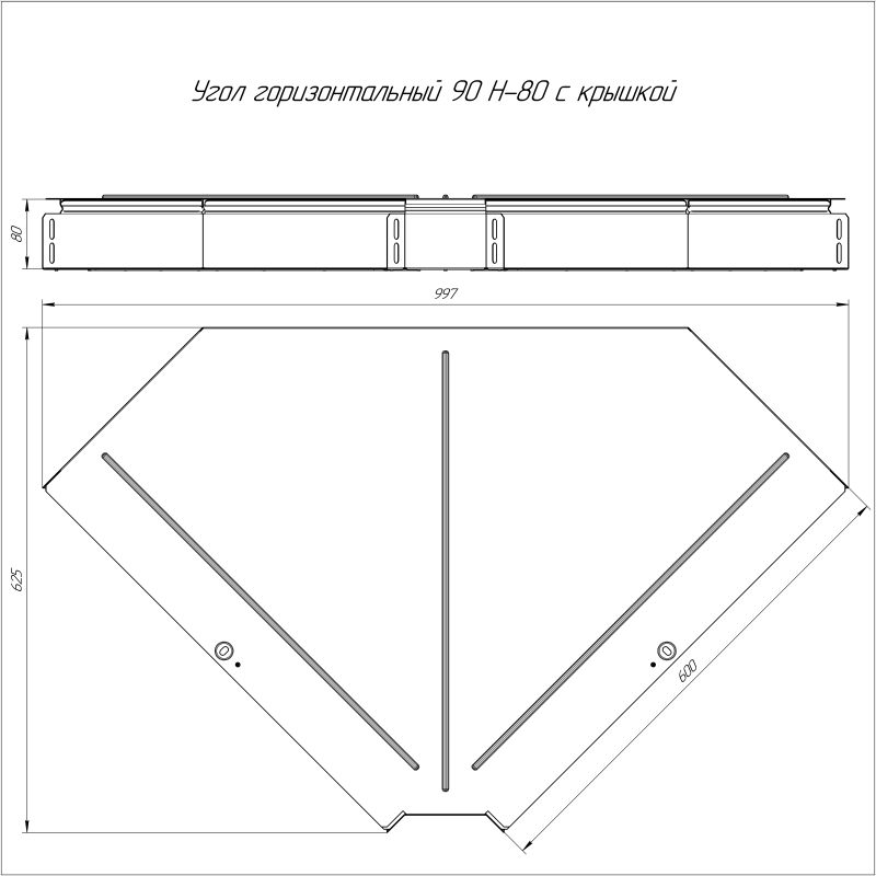 Угол горизонтальный внутренний 90град. 600х80 с крышкой Стандарт Промрукав PR16.0629