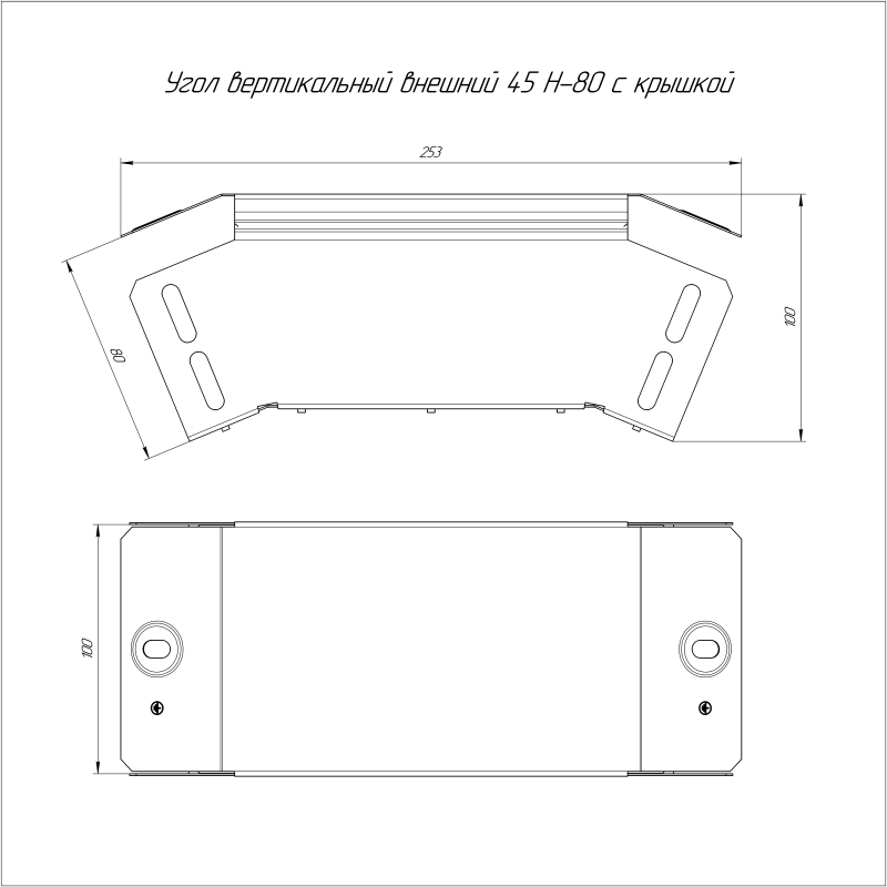 Угол вертикальный внешний 45град. 100х80 с крышкой Стандарт Промрукав PR16.0552