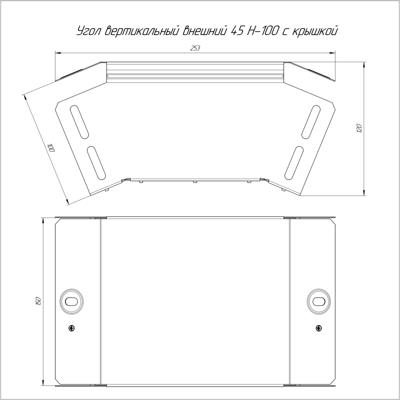 Угол вертикальный внешний 45град. 150х100 с крышкой Стандарт Промрукав PR16.0556
