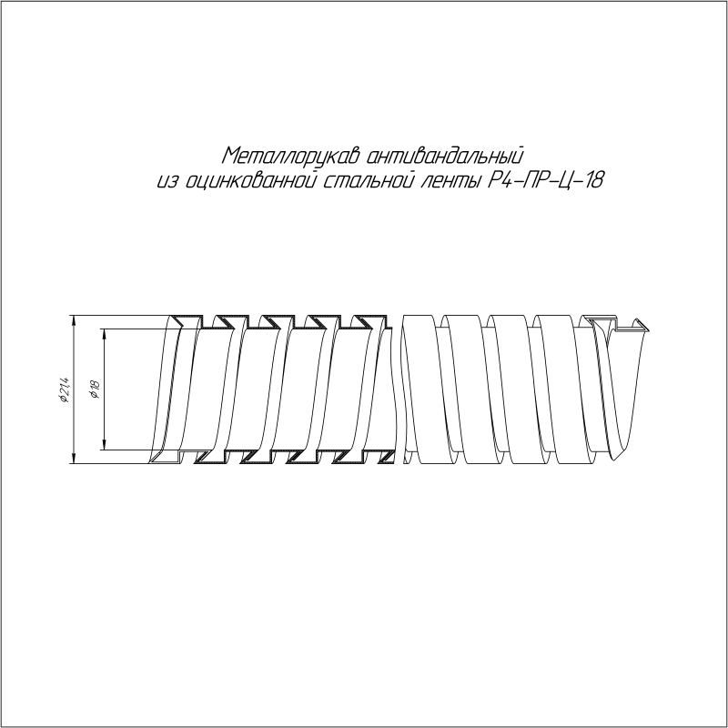 Металлорукав Р4-ПР-Ц-18 1900 Н УХЛ1 антивандальный (уп.50м) Промрукав PR04.0309