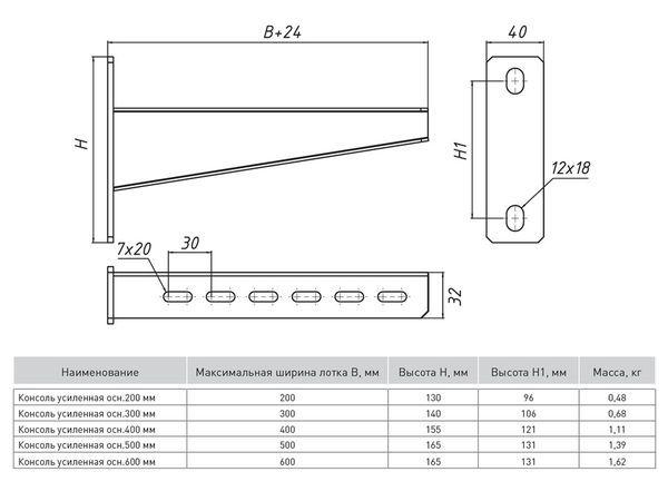 Консоль усиленная осн.200 2.5мм сталь HDZ гор. оцинк. EKF ky200