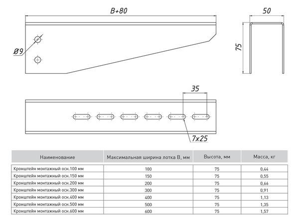 Кронштейн монтажный осн.400 1.5мм сталь EKF km400