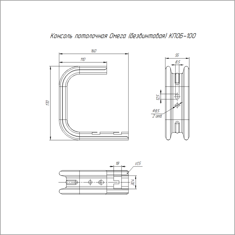 Профиль Омега для проволочного лотка С-образ. осн.100 безвинтовой Промрукав PR16.1094
