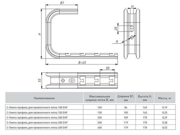 Профиль Омега для проволочного лотка С-образ. осн.400 1.5мм EKF ompcp400