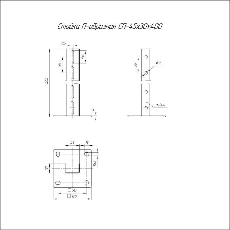 Стойка П-образная 45х30х400 СП Промрукав PR08.5117