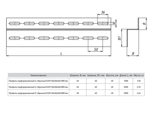 Профиль Z-образный перфорир. 40х60 L3000 К239 EKF ppz4060-3-2