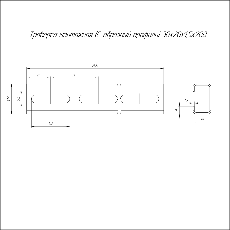 Траверса монтажная С-образ. 30х20 L200 сталь 1.5мм Промрукав PR16.1147