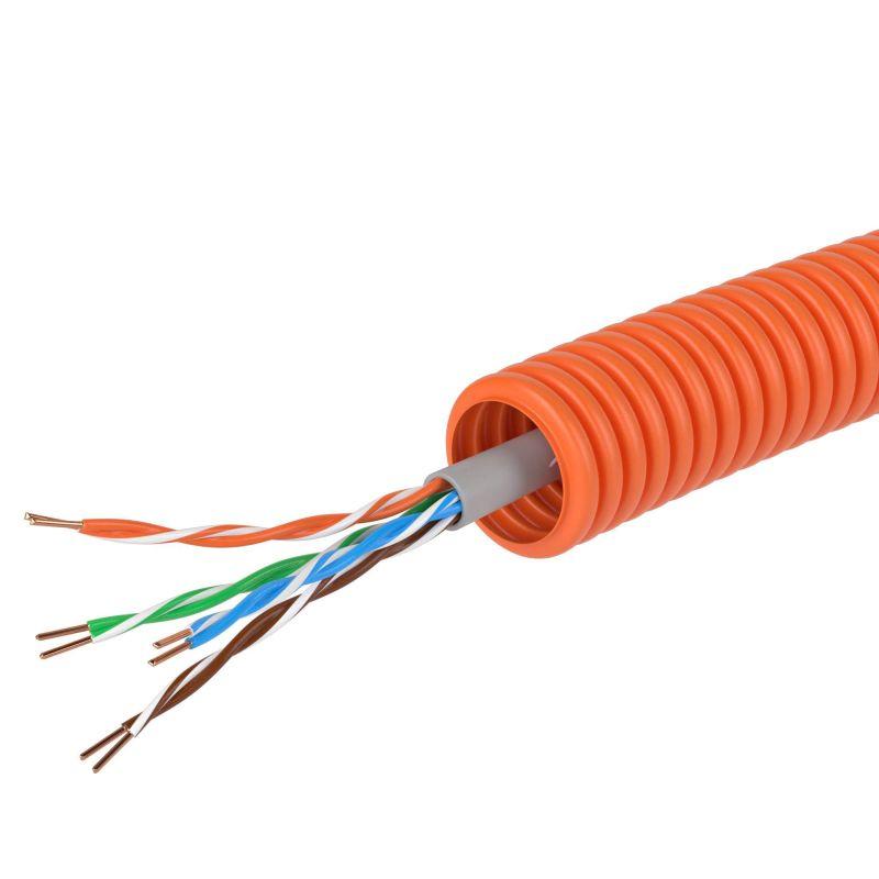 Электротруба ПНД гибкая гофрированная d16мм с кабелем витая пара 5EU/UTP нг(А)-HF (уп.100м) оранж. DKC 7EU916100