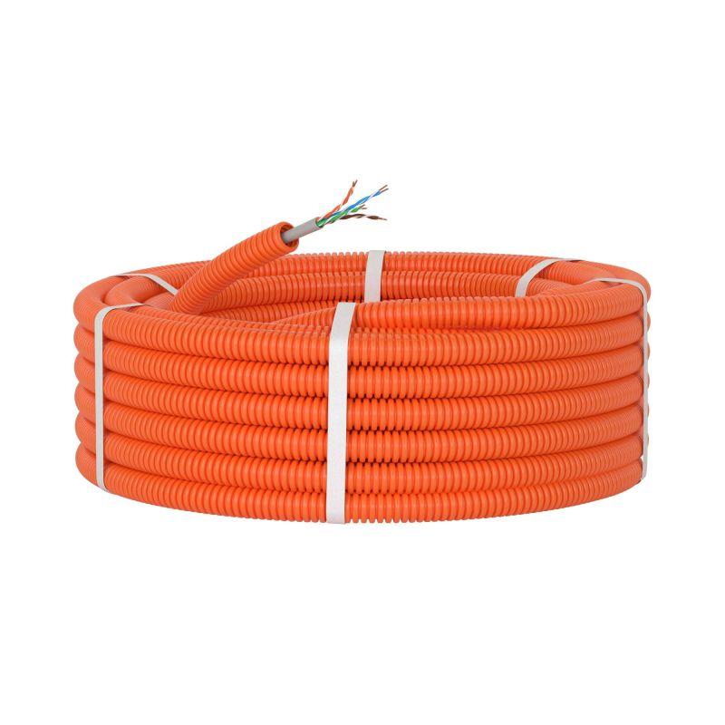 Электротруба ПНД гибкая гофрированная d16мм с кабелем витая пара 5EU/UTP нг(А)-HF (уп.25м) оранж. DKC 7EU91625