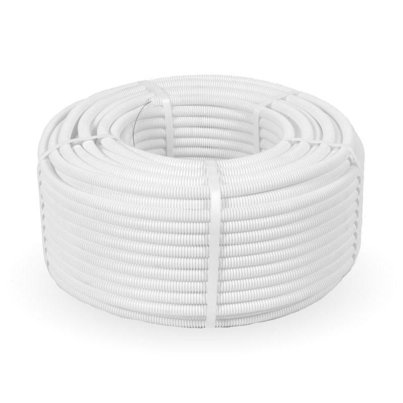 Труба гофрированная ПЛЛ тяжелая d16мм с протяжкой безгалогенная (HF) негорючая (НГ) бел. (уп.100м) Промрукав PR02.0240