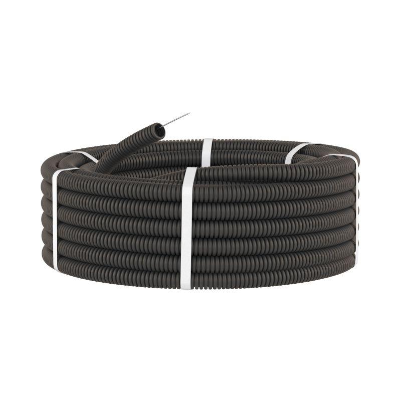 Труба гофрированная ПНД гибкая легкая d16мм с протяжкой черн. (уп.25м) DKC 7171625