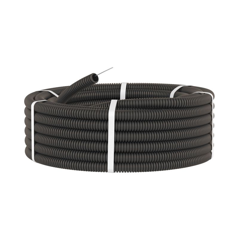 Труба гофрированная ПНД гибкая легкая d20мм с протяжкой черн. (уп.50м) DKC 7172050