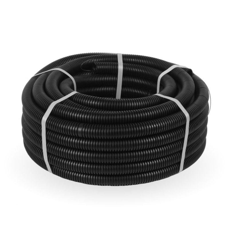 Труба гофрированная ПНД легкая d32мм с протяжкой 350 Н безгалоген. (HF) стойкая к УФ черн. (уп.25м) Промрукав 161559