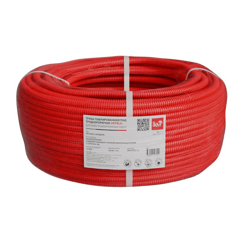 Труба гофрированная ПНД легкая d40мм с протяжкой безгалоген. трудногорючая (HFFRLS) KM-FRTG-40 (уп.15м) КМ LO62322