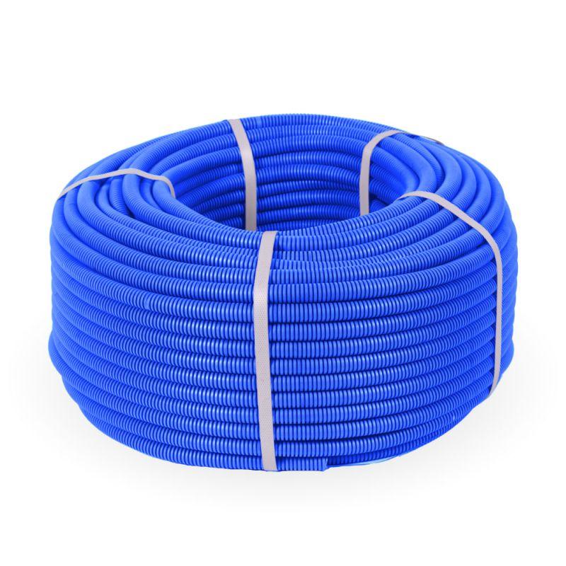 Труба гофрированная ПП легкая d20мм с протяжкой 350 Н безгалоген. (HF) син. (уп.100м) Промрукав PR02.0052