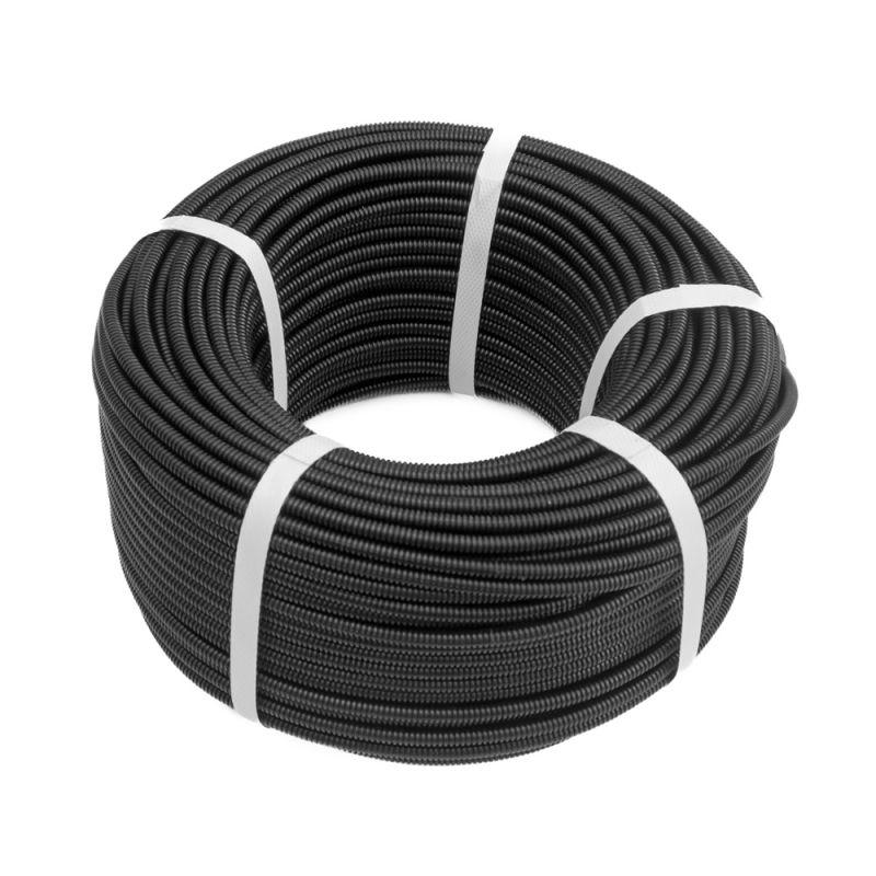 Труба гофрированная ПП легкая dвн 5.0мм dнар 7.2мм безгалоген. 350 Н (HF) стойкая к УФ черн. (уп.100м) Промрукав PR02.0427