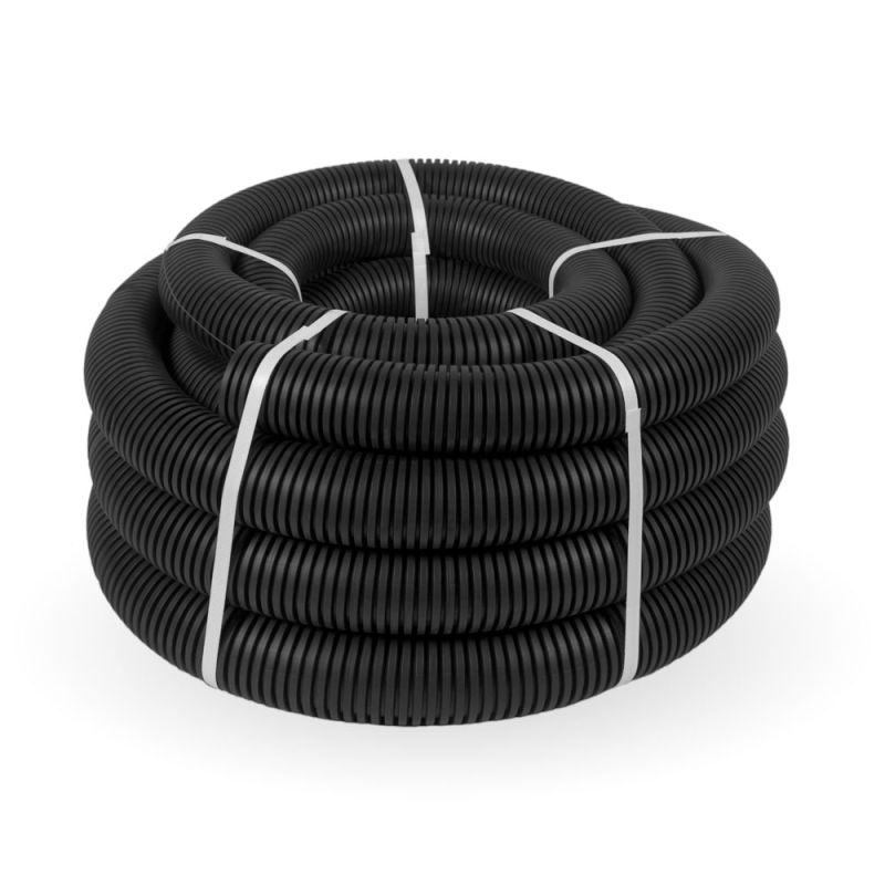 Труба гофрированная ПВХ легкая d63мм с протяжкой 350 Н черн. (уп.15м) Промрукав PR01.0091