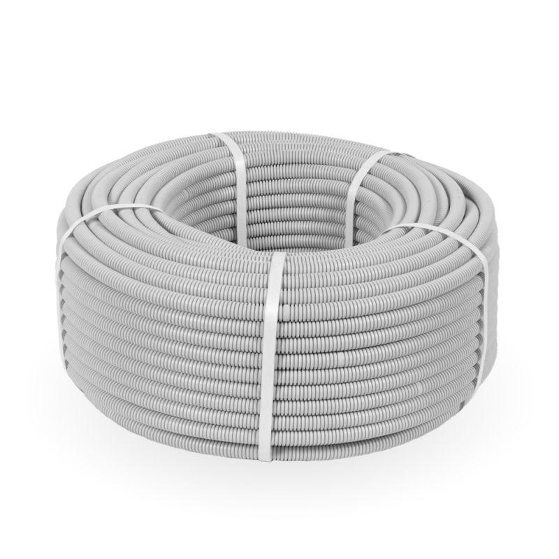 Труба гофрированная ПВХ сверхтяжелая d16мм с протяжкой 1100 Н сер. (уп.50м) Промрукав PR.0116325