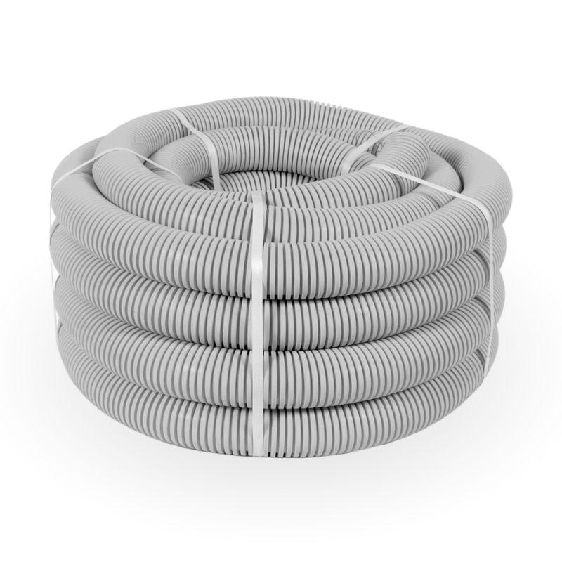 Труба гофрированная ПВХ тяжелая d40мм с протяжкой 750 Н сер. (уп.15м) Промрукав PR.0140411
