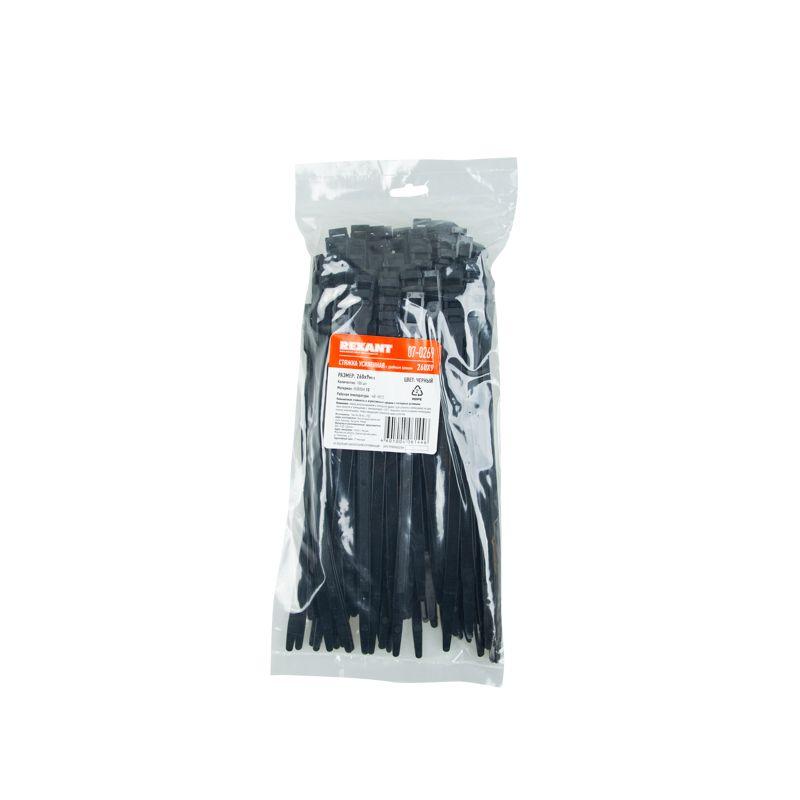 Хомут кабельный 9х260 усиленный с двойным горизонтальным замком nylon-12 черн. (уп.100шт) Rexant 07-0269